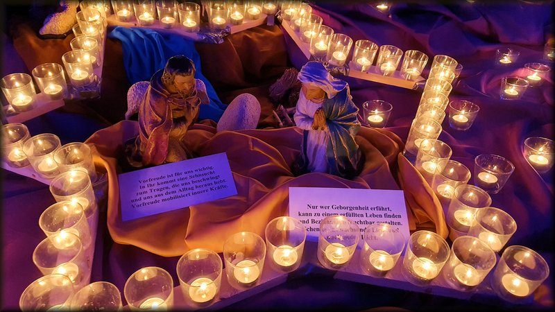 Bilder von der besinnlichen Andacht zum Advent, um bewusst zur Ruhe kommen zu können. In stimmungsvoller Atmosphäre werden Texte, Impulse, Bilder, Musik und Videos präsentiert.